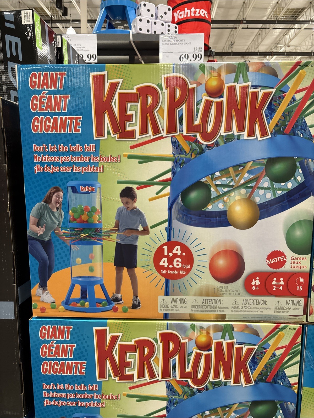 The Eastpoint Sports 4.6 Ft Tall Giant KerPlunk Game is a fun and engaging game that combines the classic Kerplunk theme with a sports-inspired design. This game includes 60 oversized balls and a bag, making it perfect for outdoor play or game nights with friends and family. With the brand's reputation for quality and innovation in sports-related toys and games, this product is sure to provide hours of entertainment for players of all ages.