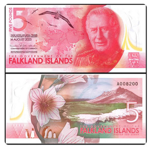 Falkland Islands 5 Pound 2025 P 20 NEW Polymer King Charles III UNC NEW Banknote